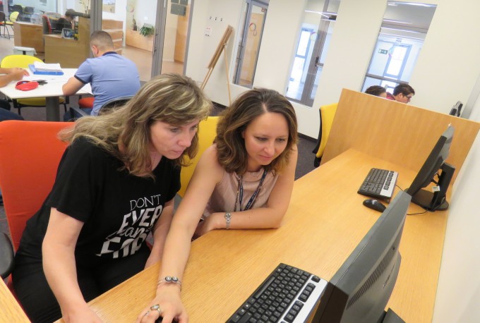 הספריה למדעי הרפואה בהלל יפה. מימין יוליה קופרברג - אחראית הספריה צילום: דוברות בית החולים