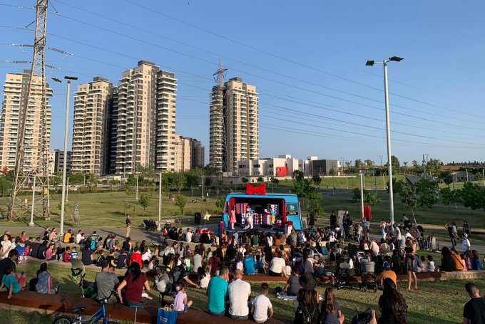הבמה המתגלגלת של התיאטרון הגיעה גם אל האקו פארק בחדרה