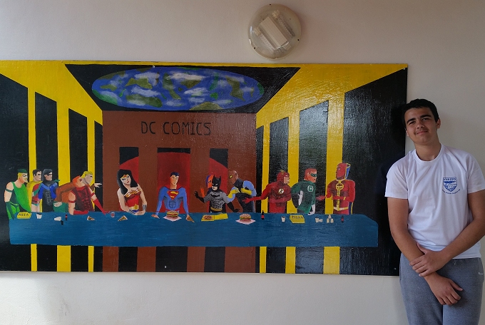 התלמיד אבי מזריאב, הציג את "גיבורי העל" יצירה שמבוססת על הקומפוזיציה של לאונרדו דה ווינצ'י, הסעודה האחרונה. את ישו והשליחים שמופיעים ביצירה המקורית והמאוד מפורסמת, החליפו גיבורי העל - סופרמן, וונדר וומן, באטמן וספיידרמן