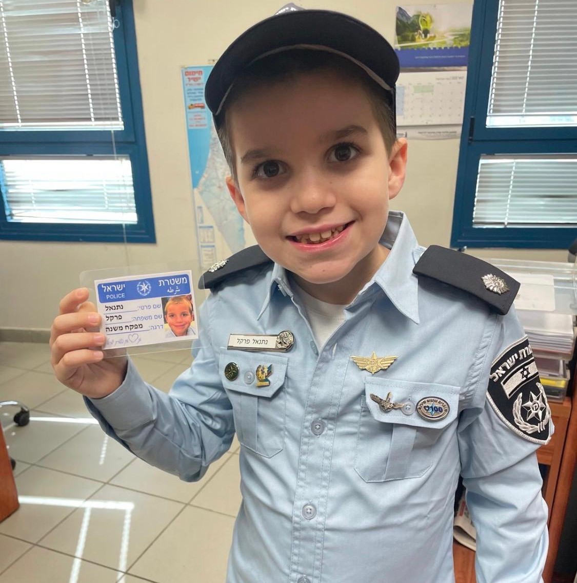 נתנאל פרקל, מנתניה: תחפושת שוטר תחנת נתניה מקורית-אמיתית, מהשתתפות בתוכנית משטרת ישראל ״ניידת המשאלות״ וגם תחפושת של צנחן. אהבנו ופרגנו!