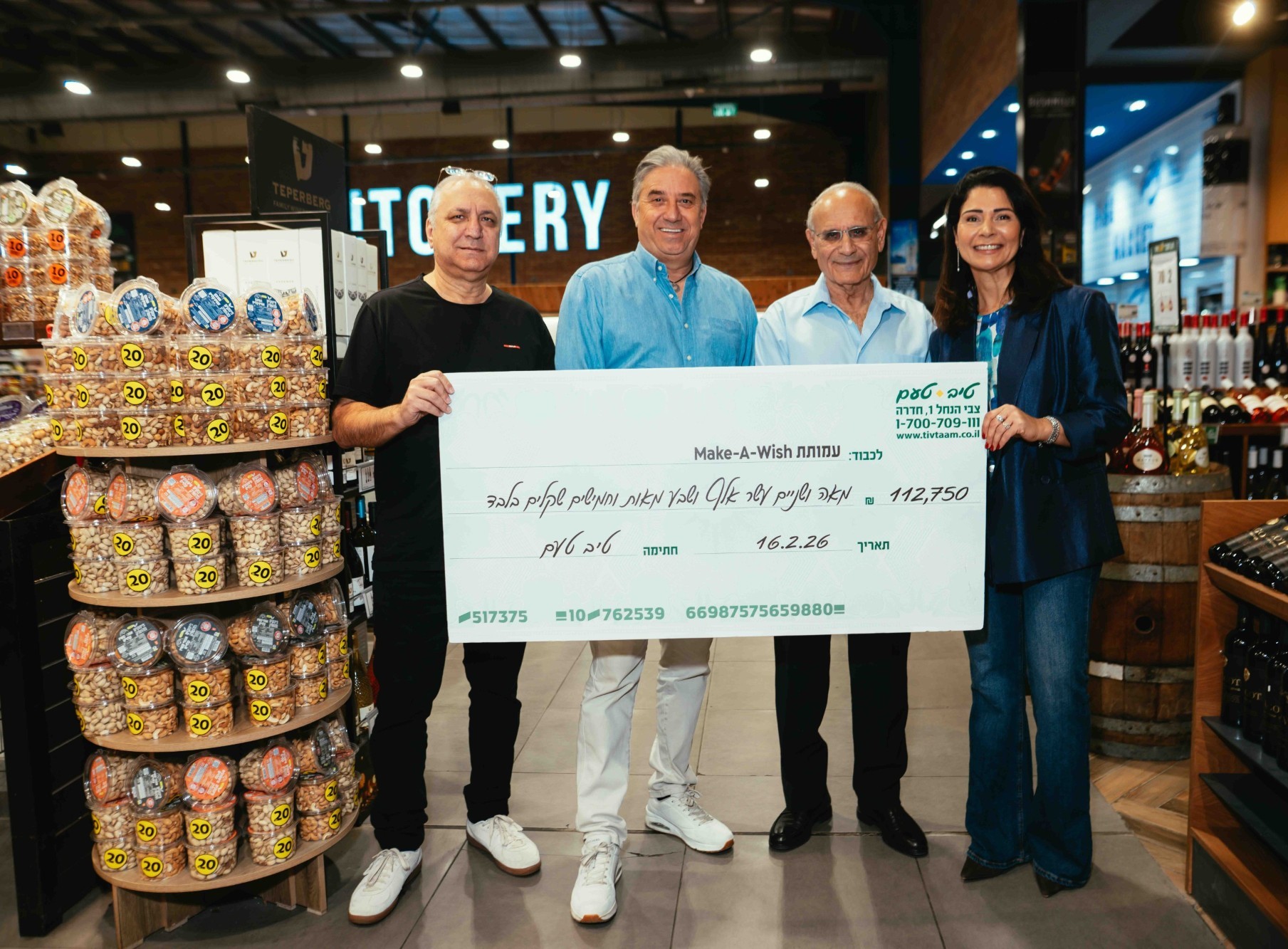 למען הילדים: חגי שלום מנכ"ל ובעלים קבוצת טיב טעם וההנהלה הבכירה, ערכו בשבוע שעבר טקס חגיגי בסניף הדגל בנתניה לטובת פעילות עמותת Make-A-Wish Israel במטרה להגשים משאלות לילדים המתמודדים עם מחלות מסכנות חיים. במסגרת זו נחתם מבצע גיוס התרומות של רשת טיב טעם שגייסה לטובת הארגון סך של 112,750 ₪.